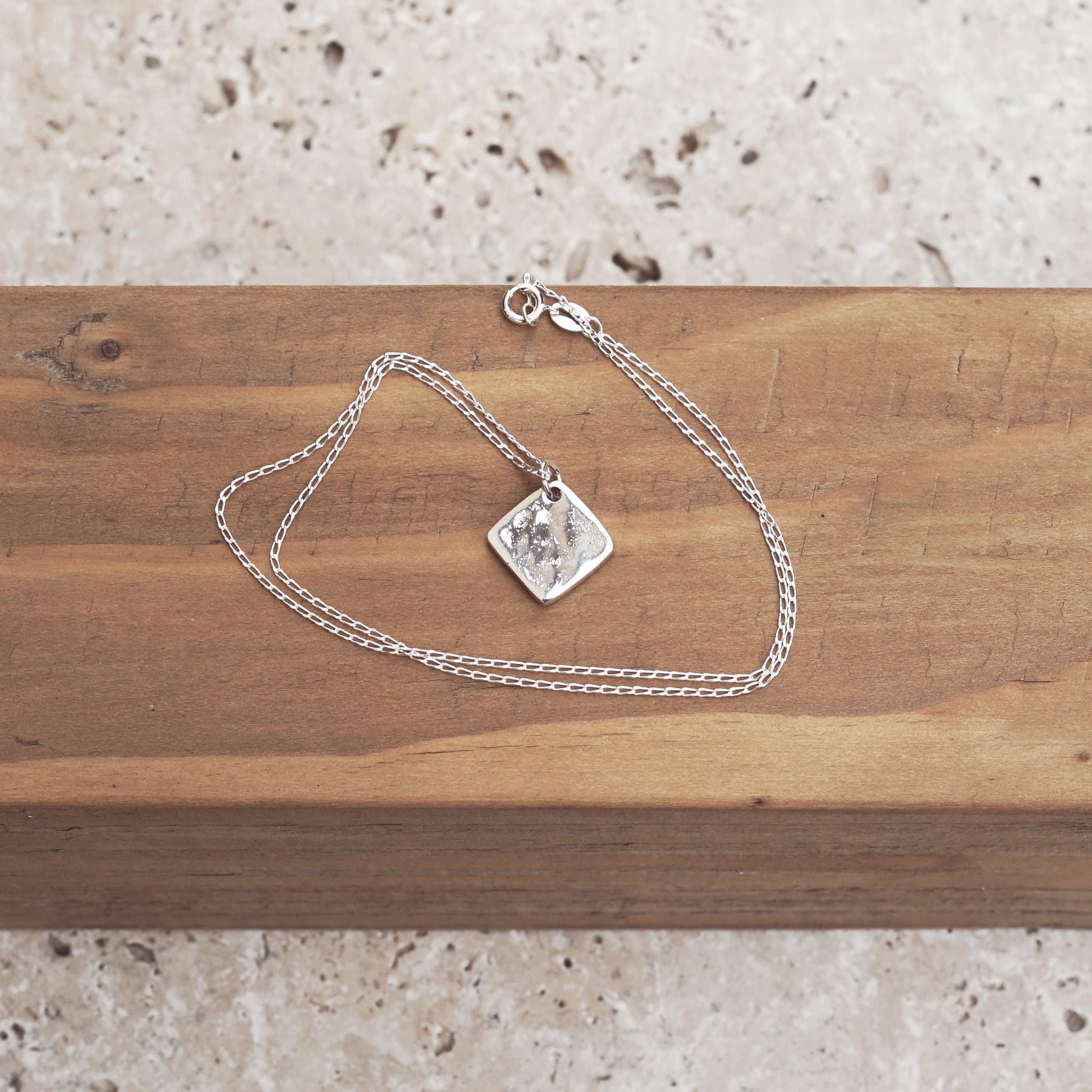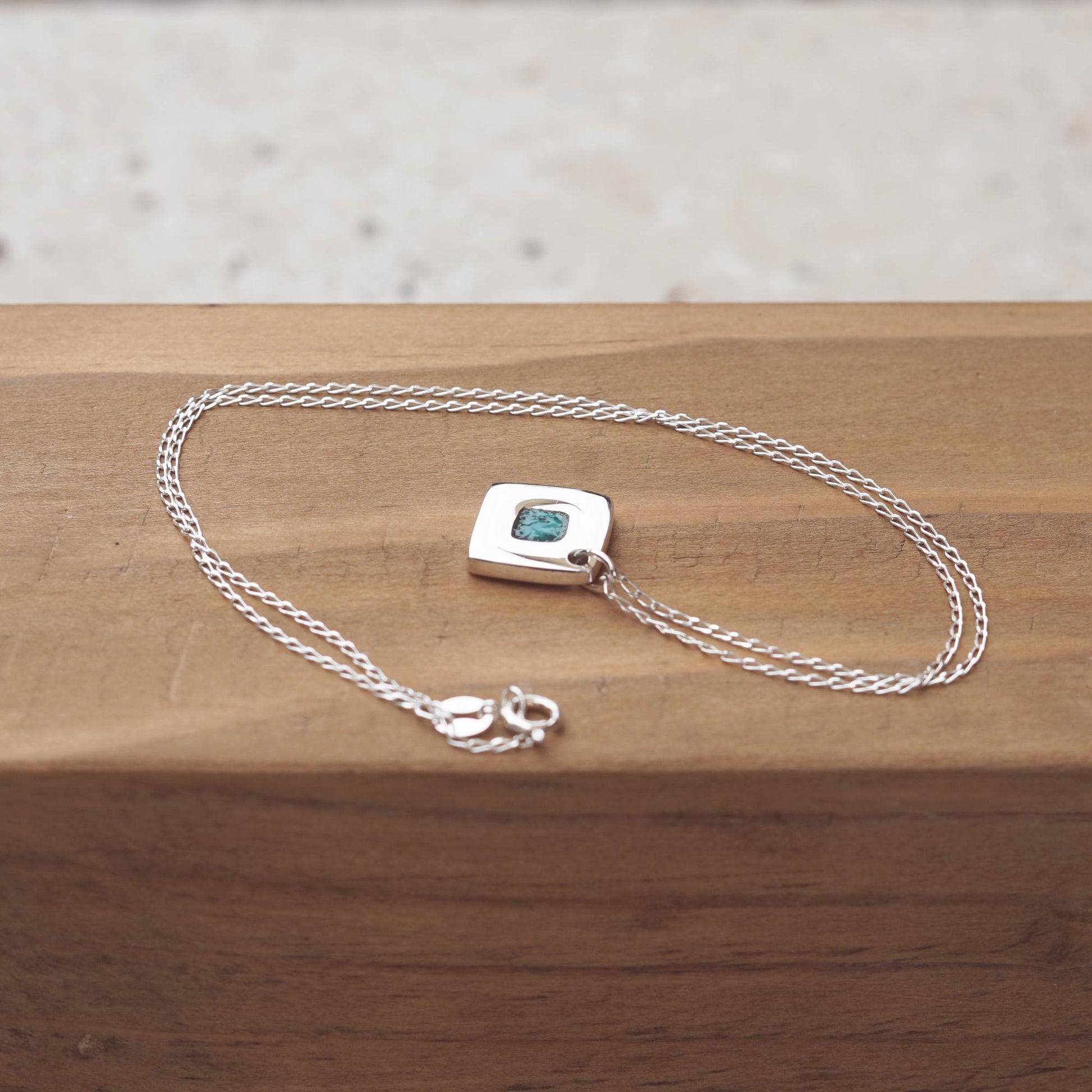 925 Silver square necklace with deep teal enamel | Handmade minimalist and elegant pendant