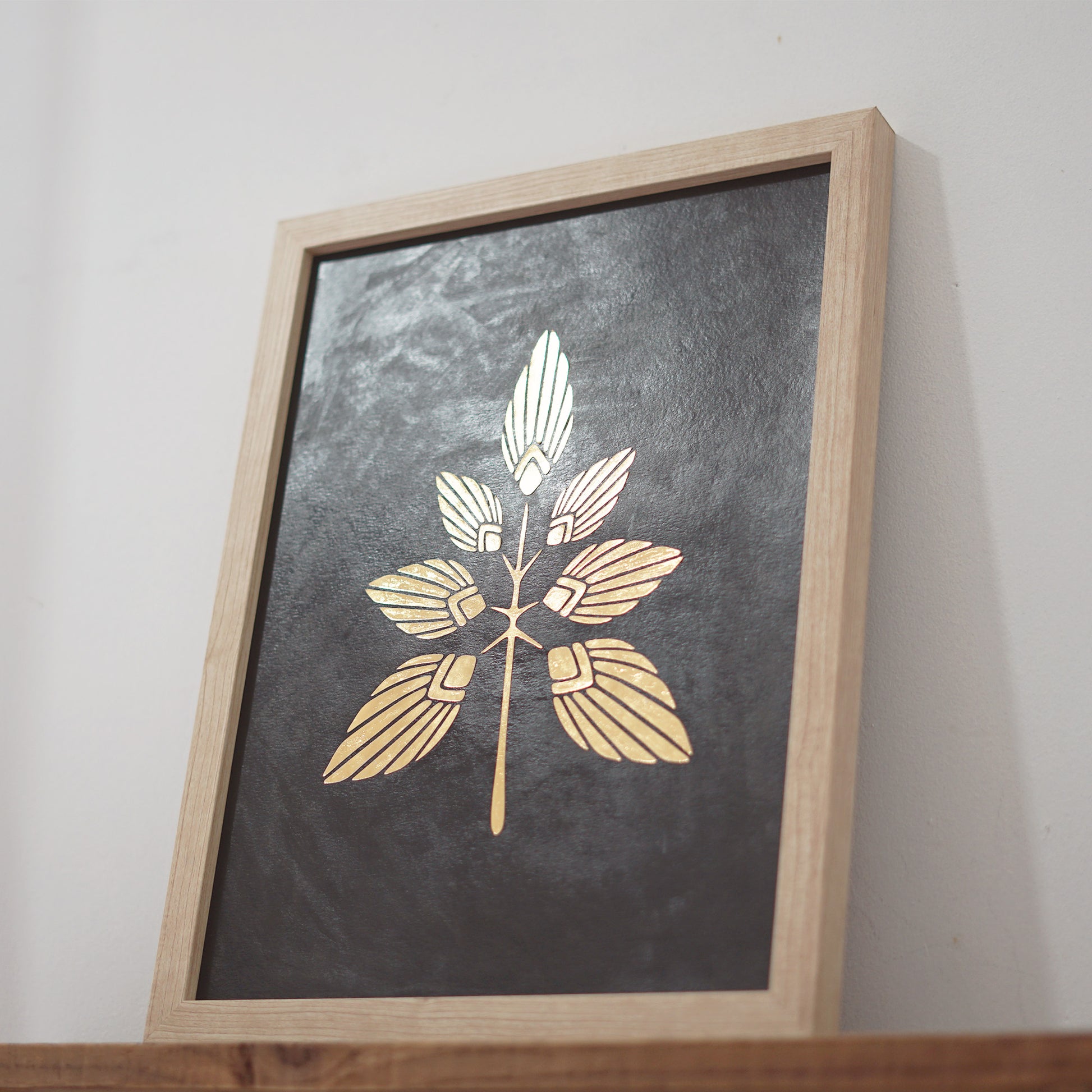 🌿 This unique botanical piece was made with love using black ink and gold foil.