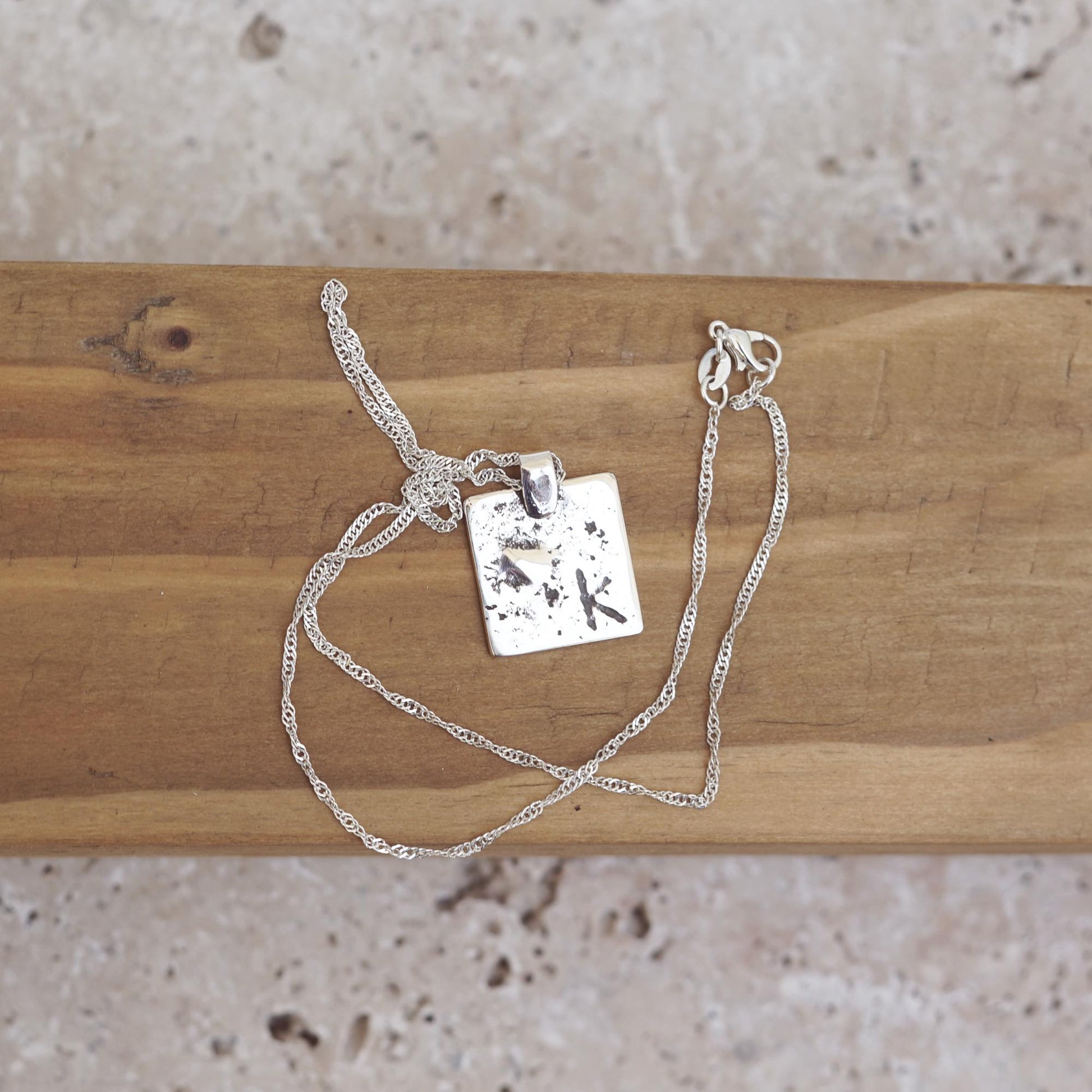🖤 This little silver pendant has a simple dark heart at the center. It’s a lovely gift for someone special (or for yourself!) and makes a cute idea for Valentine’s Day. The clean square shape makes it easy to wear with anything, every day. It comes with a .925 sterling silver twisted chain, just like in the photos, and the chain is 42 cm long (about 16 inches).