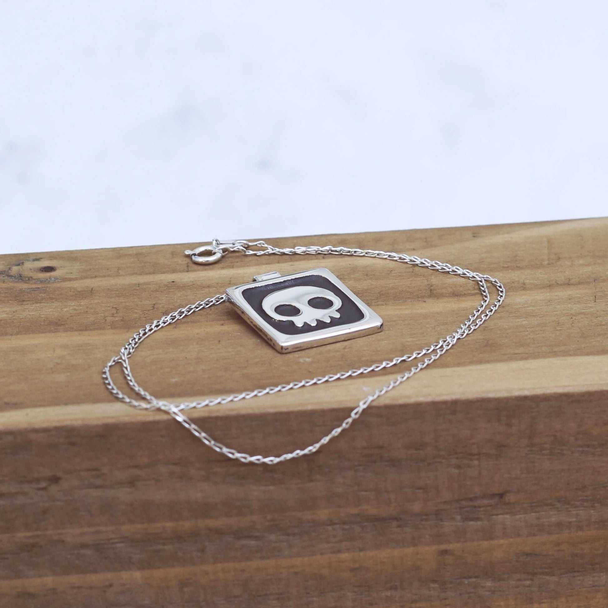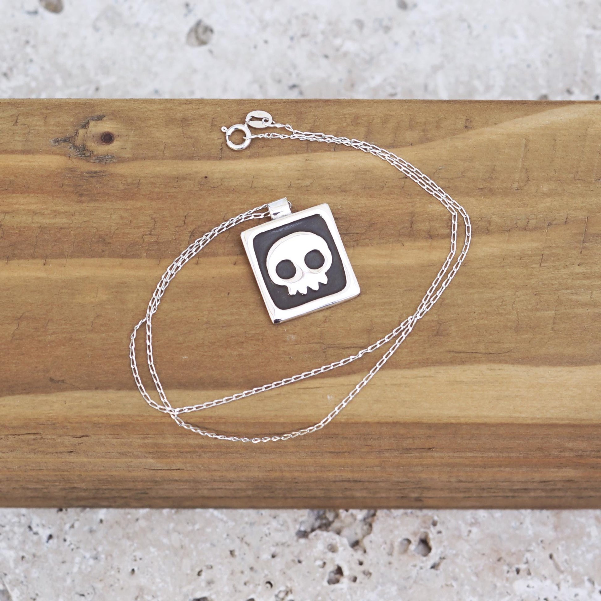 💀 This square pendant features a minimalist skull design — bold but playful, with clean lines and a slightly raised relief that gives it depth and character. I wanted it to feel like a little talisman: something a bit edgy, a bit cute, and easy to wear every day (even easier during Halloween !). It comes paired with a .925 sterling silver chain, as shown in the photos, with a length of 40 cm (15.7 inches).