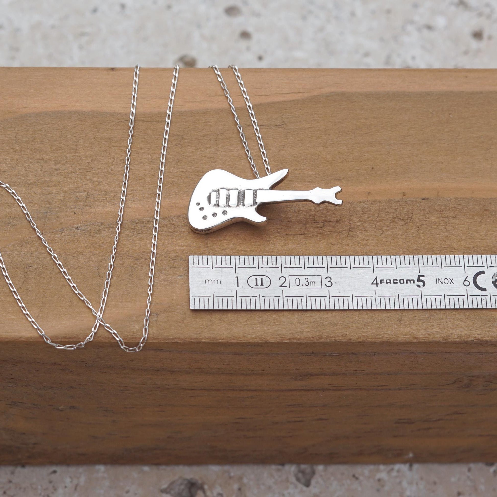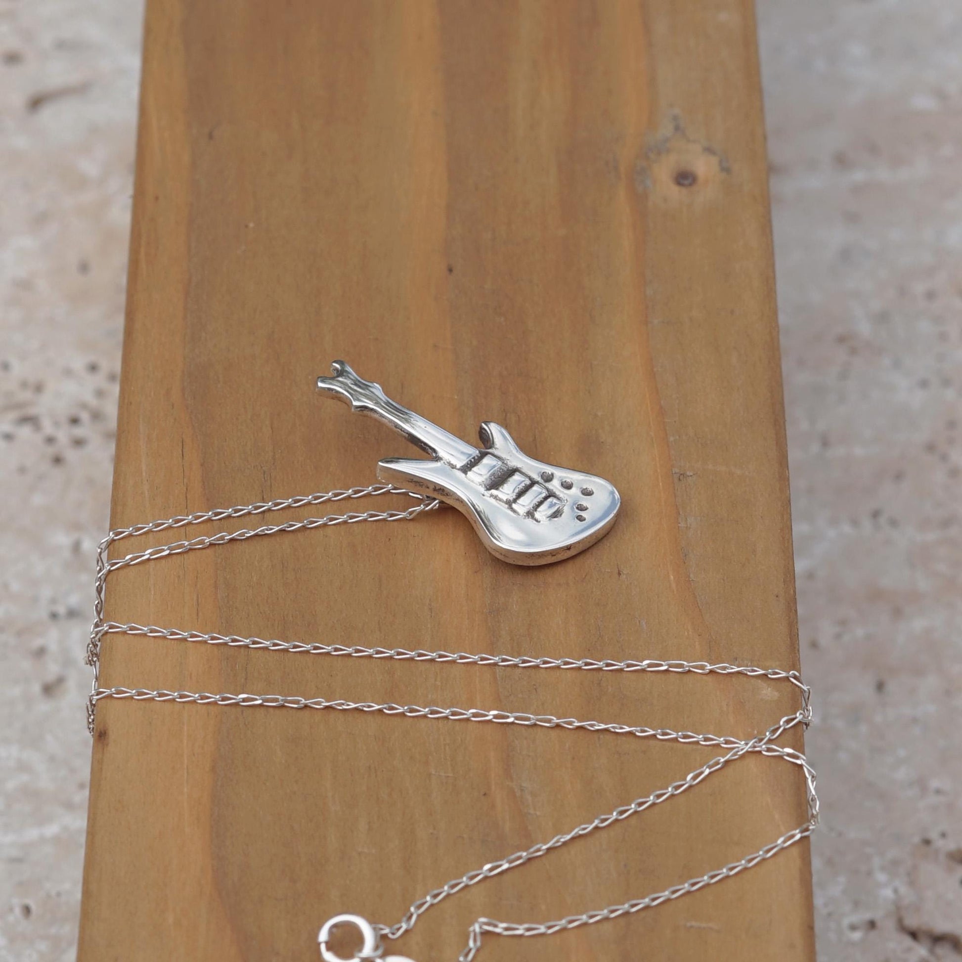 Sterling Silver Electric Guitar Necklace: Rock Music Pendant